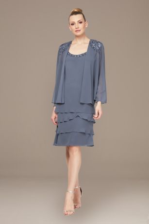 Beaded Tiered Chiffon Tank Sheath Dress And Jacket David S Bridal