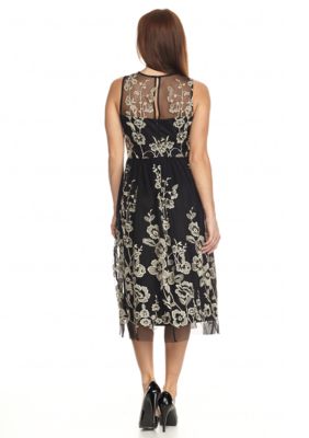 Beige By Eci Floral Embroidered Mesh Fit And Flare Dress Belk